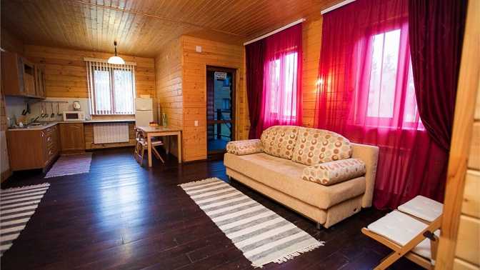 Гости размещаются в коттеджах и гостиничных номерах категории стандарт или улучшенный. Коттедж — двухэтажный деревянный дом, оснащенный гостиной с камином и мягким уголком, и кухней с необходимой мебелью и бытовой техникой. Также в доме есть спальные комнаты и санузел с душевой кабиной.